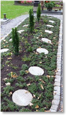Eine sinnliche Alternative zu den sich schnell verbreitenden Urnenwänden ist die Gemeinschaftsgrabanlage. Diese bietet Raum für eine Bestattung der Urne in der Erde und die Möglichkeit der aktiven Grabnutzung: