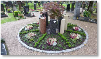 einen Ort für ein persönliches Grabzeichen, einen eigenen Platz zum Ablegen von Blumen oder Entzünden einer Kerze. Zudem können die Hinterbliebenen durch eine geregelte Grabpflege von der individuellen Pflege entlastet werden.